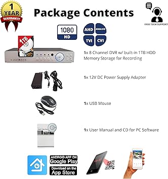 Amazon Com Evertech 8 Ch Dvr With 1tb Hard Drive H264 Hd Ahd Tvi Cvi Analog Cctv Security Surveillance Recorder 1tb Hdd Installed And Pre Configured Electronics